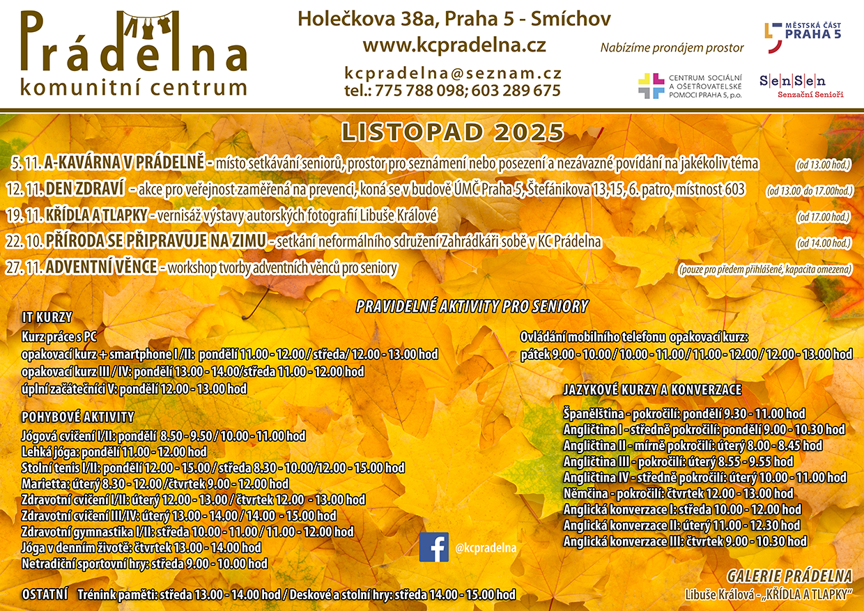Podrobnou nabídku aktivit a aktuální program naleznete na internetové adrese www.kcpradelna.cz