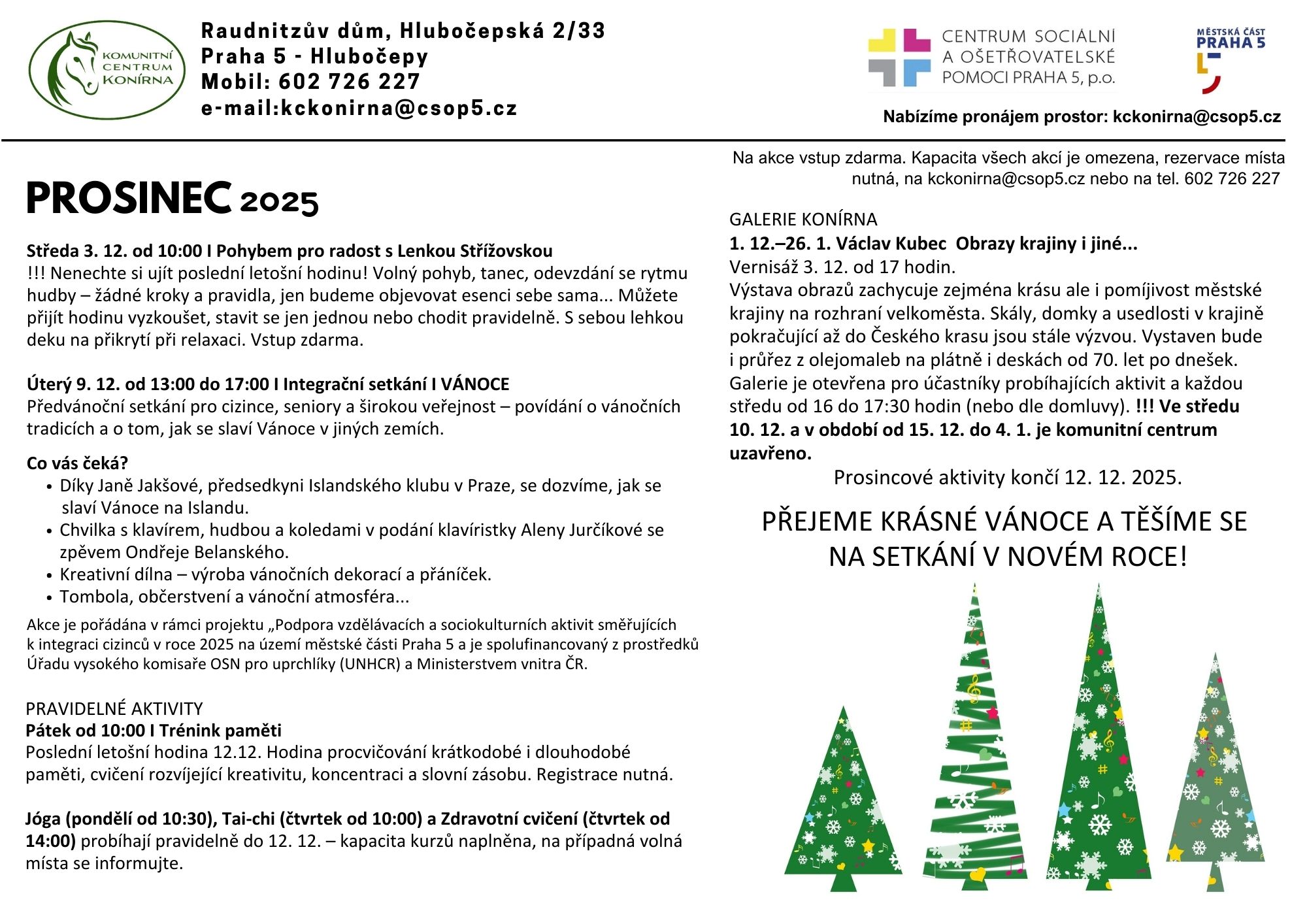 - Zázemí a prostor pro vlastní aktivity seniorů