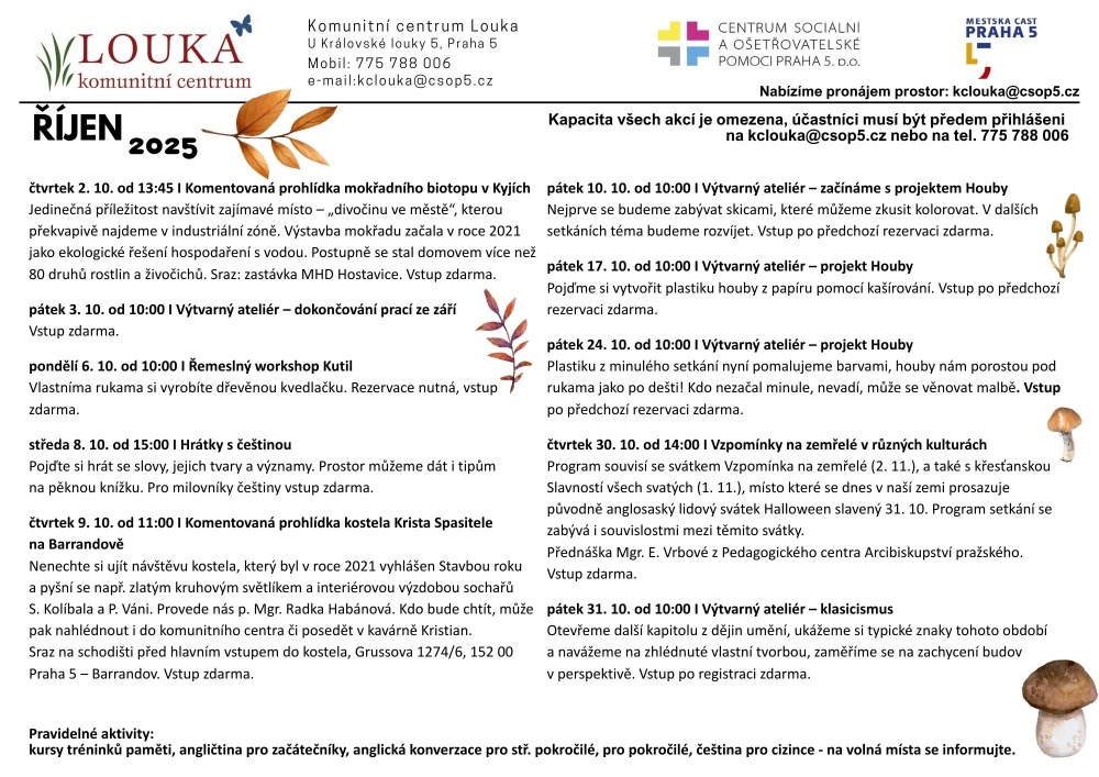 - Vzdělávací a společenský program pro seniory - kurzy PC, tréninky paměti, tvořivé dílny apod.