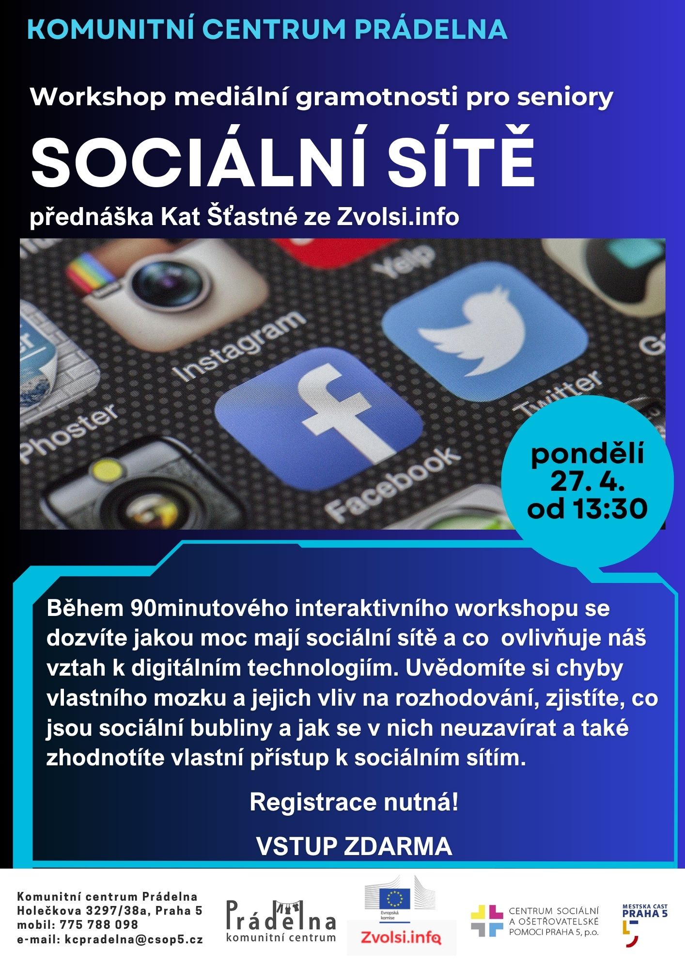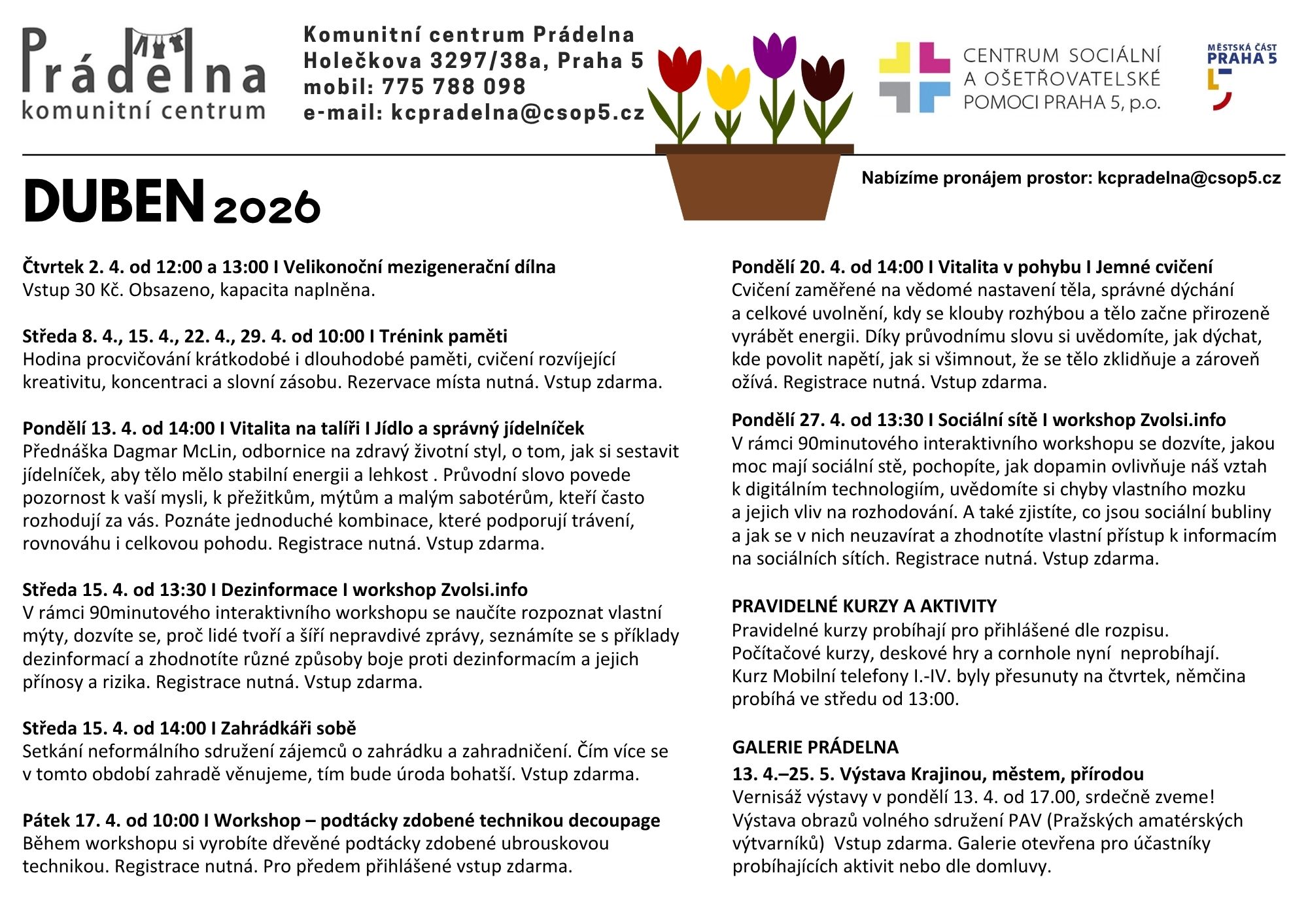 Komunitní centrum PrádelnaHolečkova 3297/38a, Praha 5mobil: 775 788 098