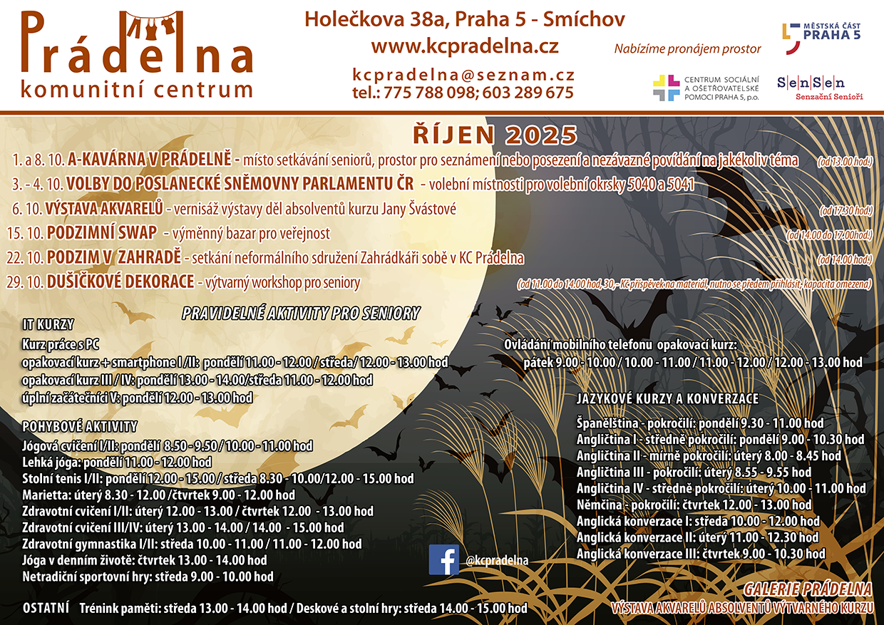 Podrobnou nabídku aktivit a aktuální program naleznete na internetové adrese www.kcpradelna.cz